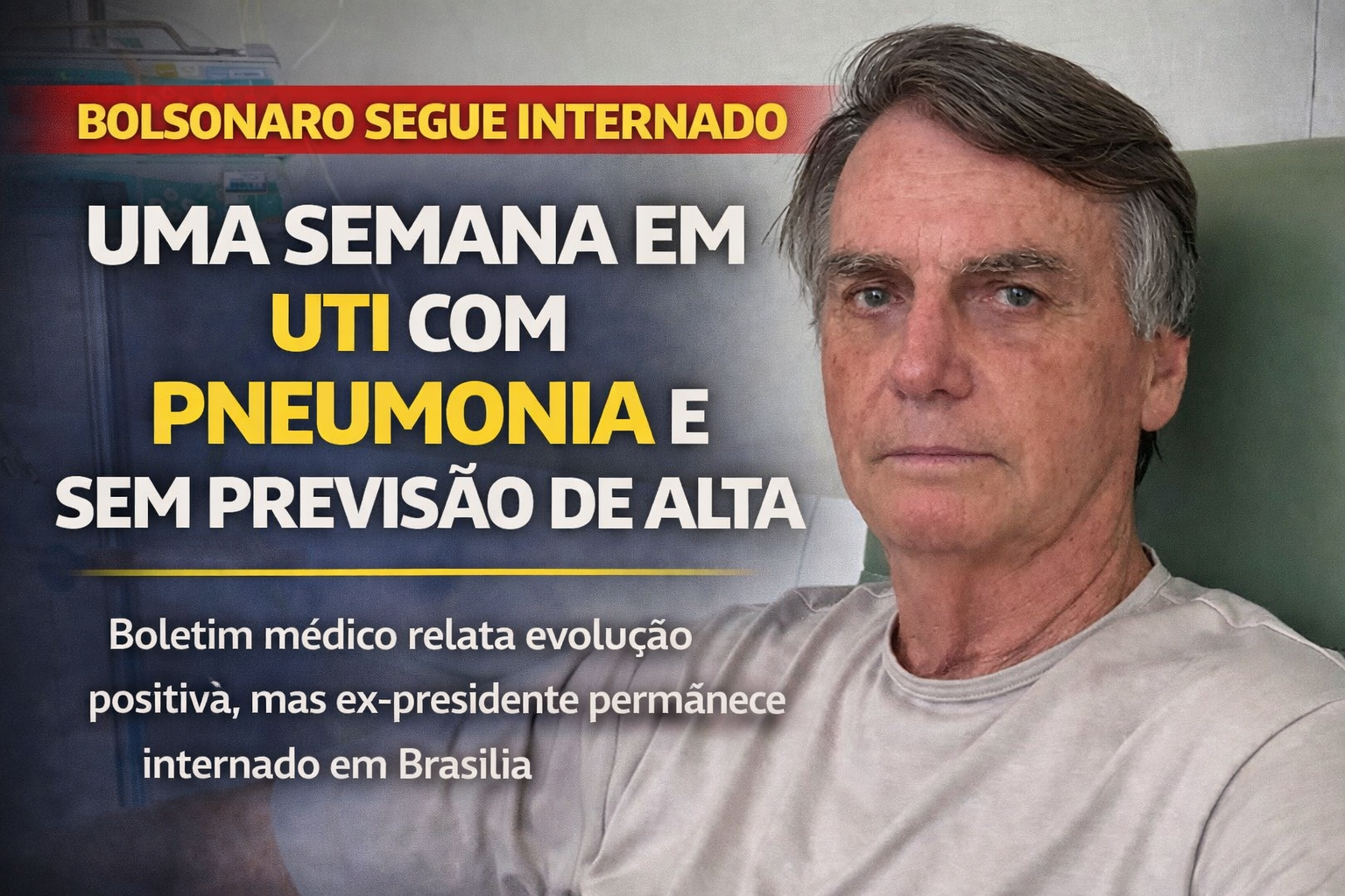 Bolsonaro completa uma semana internado com melhora no quadro de pneumonia, mas segue sem previsão de alta da UTI