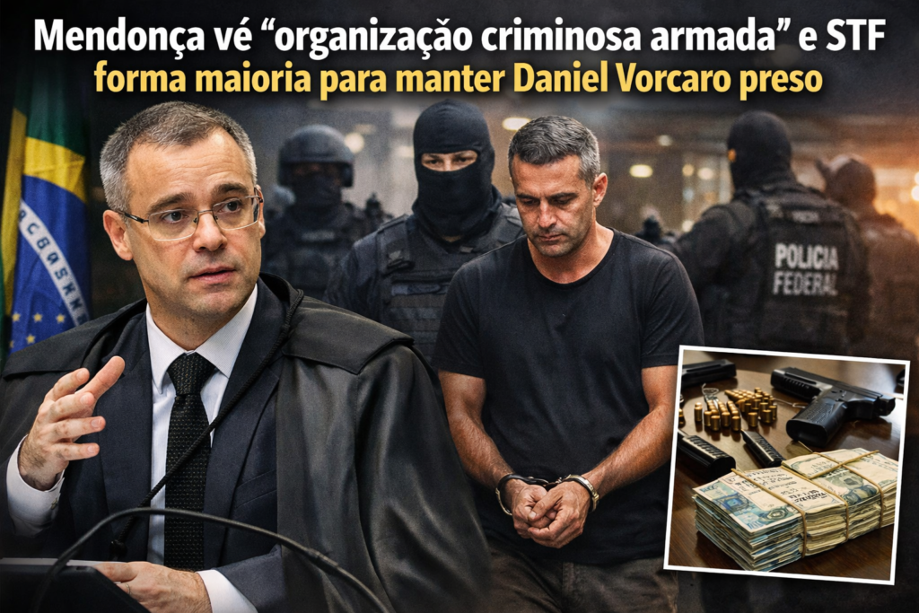 A Segunda Turma do Supremo Tribunal Federal (STF) formou maioria nesta sexta-feira (13) para manter a prisão preventiva do banqueiro Daniel Vorcaro, dono do Banco Master. No voto que abriu o julgamento no plenário virtual, o ministro André Mendonça afirmou que Vorcaro integra e comanda uma “organização criminosa armada” que representa uma “perigosa ameaça” à sociedade.