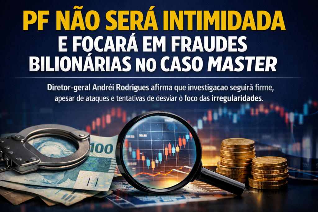 O diretor-geral da Polícia Federal, Andrei Rodrigues, afirmou nesta quarta-feira (18) que a corporação não recuará diante de pressões e seguirá investigando “até o fim” as suspeitas de fraudes bilionárias envolvendo o chamado caso Master. A declaração foi feita durante evento da Federação Brasileira dos Bancos, em São Paulo.